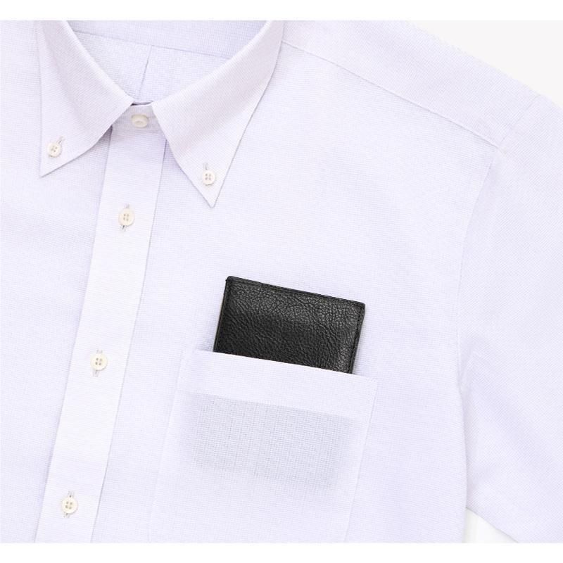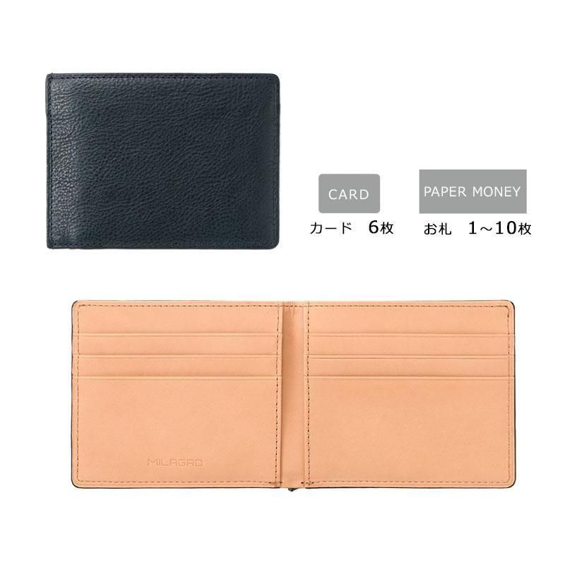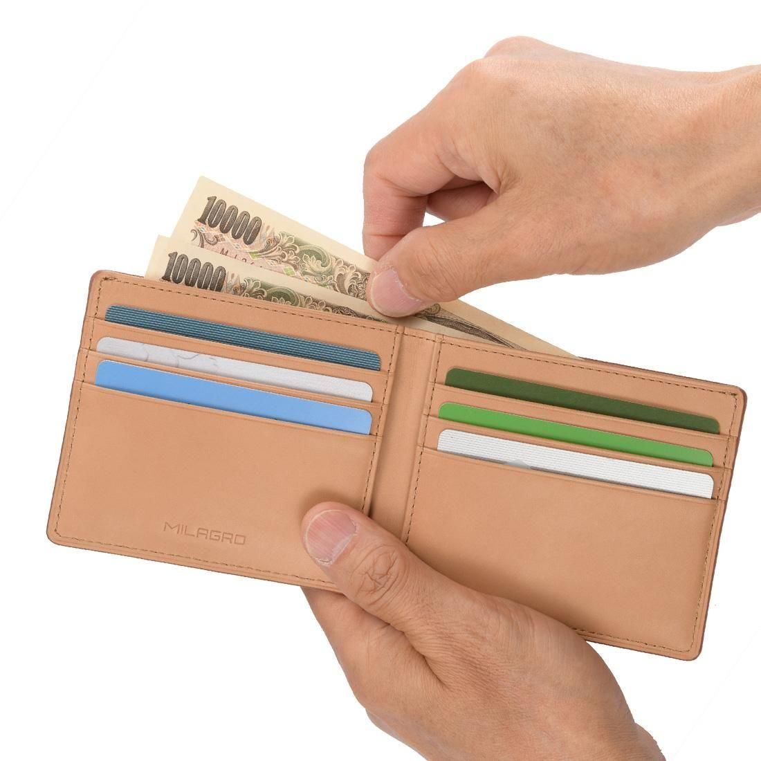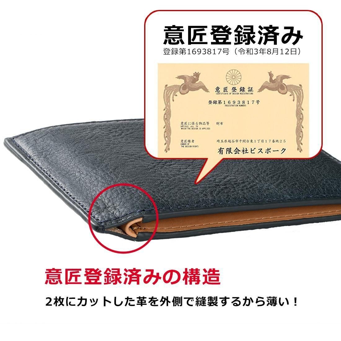 従来の使いやすい財布の内装のまま、革を知り尽くした財布屋が極限まで革を薄く漉き、丈夫で薄い財布を実現しました。意匠登録済みの新しい形状は外面の革を折り曲げるのでなく、2枚にカットして外側で縫製するユニークな形状です。二つ折り財布の”折り”部分がフラットな形状で、ポケットに入れても邪魔にならず出し入れもラクラクです。内部は片側がカード段で、もう片方が小銭入れという従来の財布のレイアウトです。革は姫路産の牛革オイルドレザーを使用。内側は牛革スムースを使用しています。
