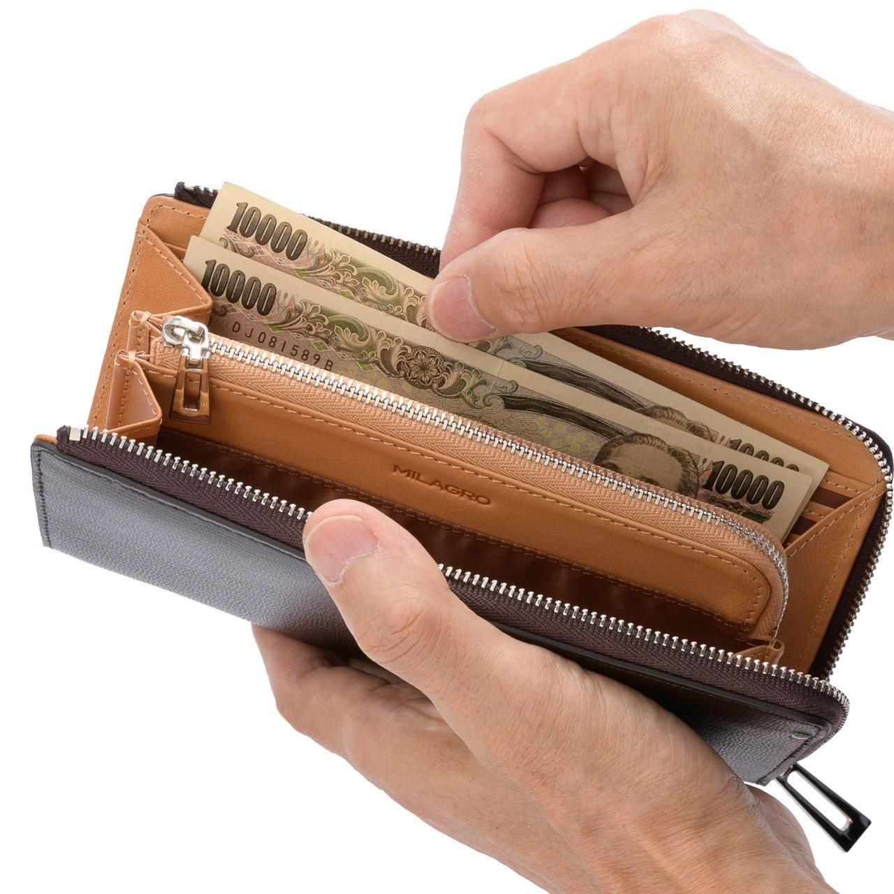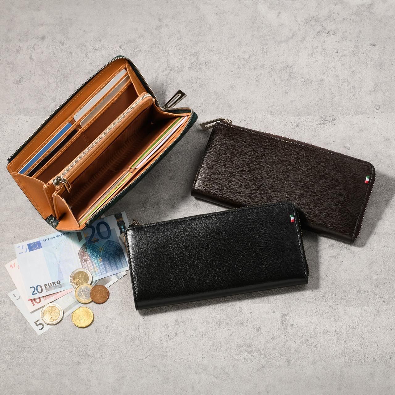 【MILAGRO】伊・Bonaudo社製パルメラートゴートレザーL字ファスナー長財布/アウトレット化粧箱なし