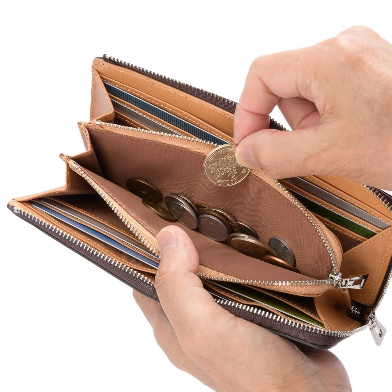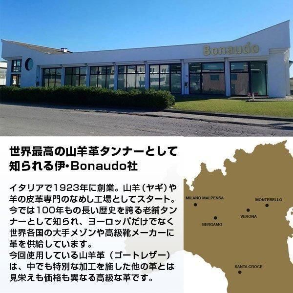 軽量で、光沢感のある伊・Bonaudo社パルメラートゴートレザーを使用した定番の二つ折り財布