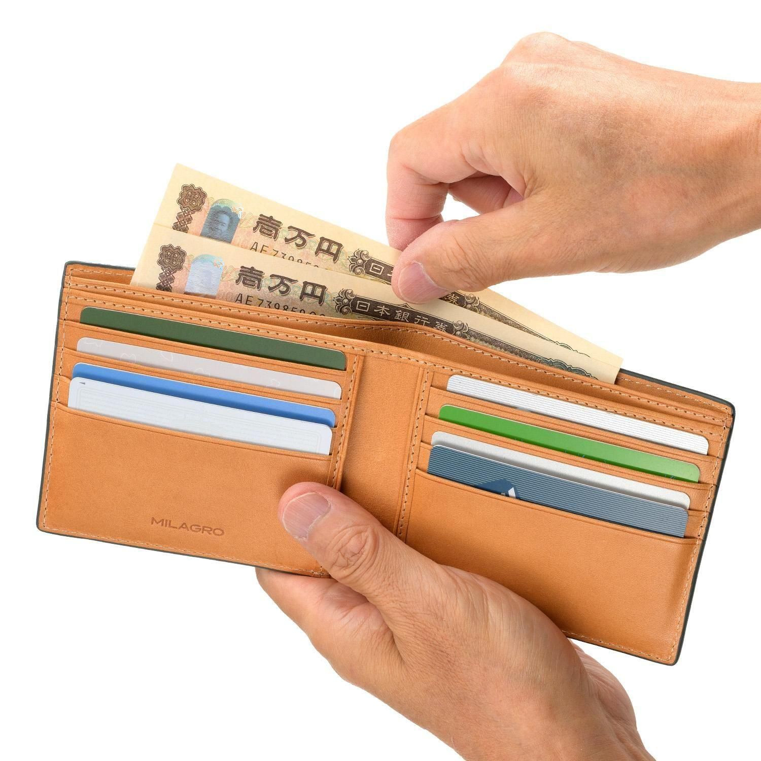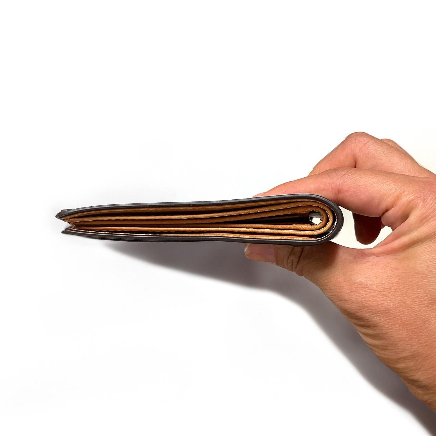 軽量で、光沢感のある伊・Bonaudo社パルメラートゴートレザーを使用した薄くて使いやすい2つ折りタイプの札入れ