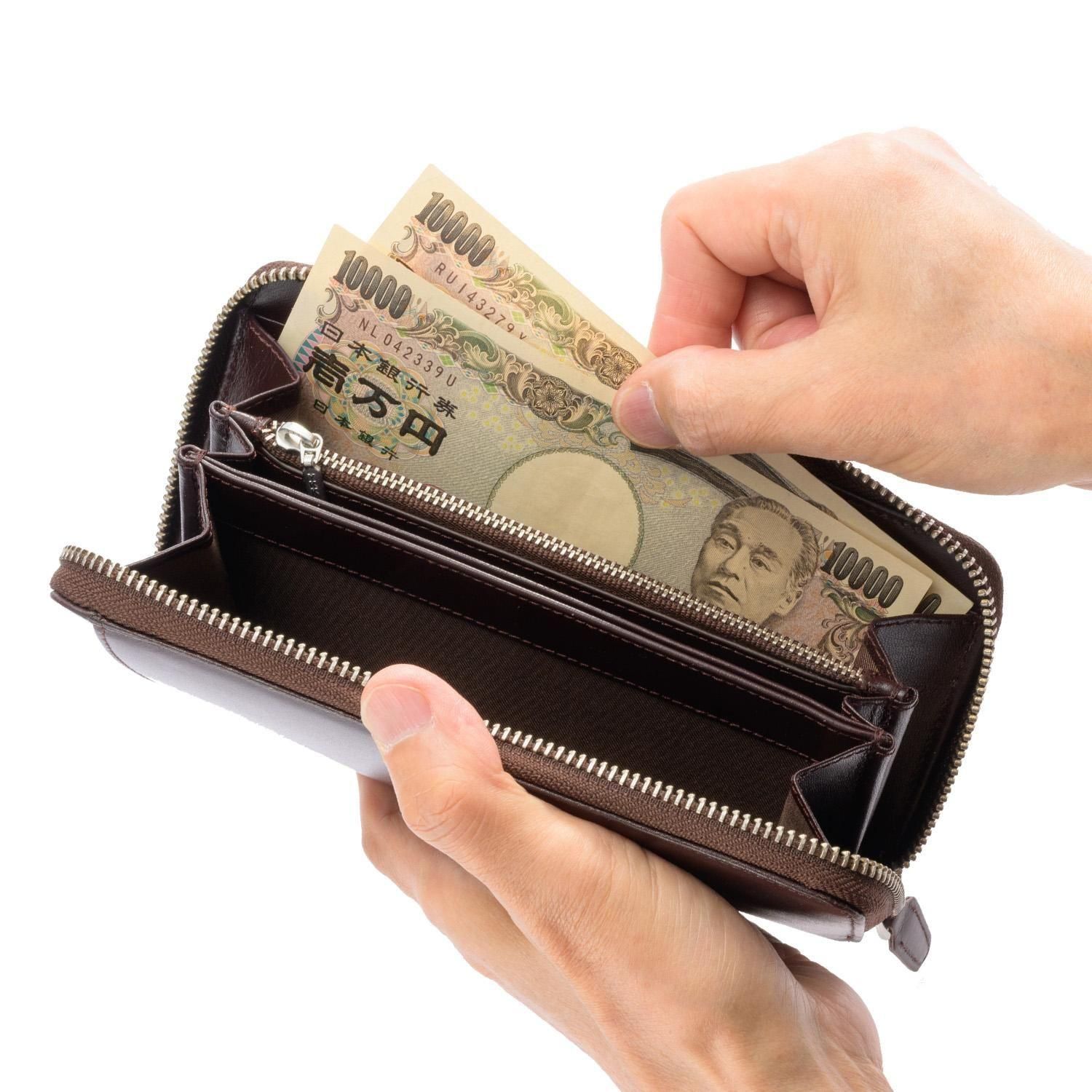”エチオピアンシープスキン”を使用。蛇腹構造で大きく開くラウンドファスナーの長財布